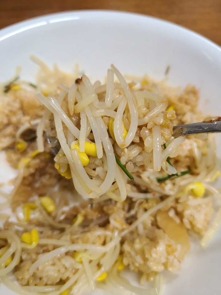 슥슥 비벼 먹어도 아삭한 콩나물과 함께 콩나물 향이 가득한 밥이 맛있습니다.