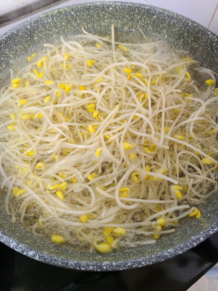 밥솥에 콩나물을 넣어 밥물을 맞춰 밥을 지어도 됩니다. 하지만, 콩나물이 조금 질겨지는 것 같아서 저는 콩나물을 따로 삶아서 준비합니다.
