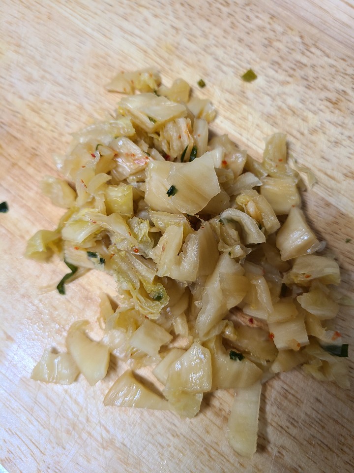 김치도 생략가능하지만, 씻은 김치를 쫑쫑 잘라서 넣어주면 간도맞고, 씹는 맛도 있어서 좋아요.