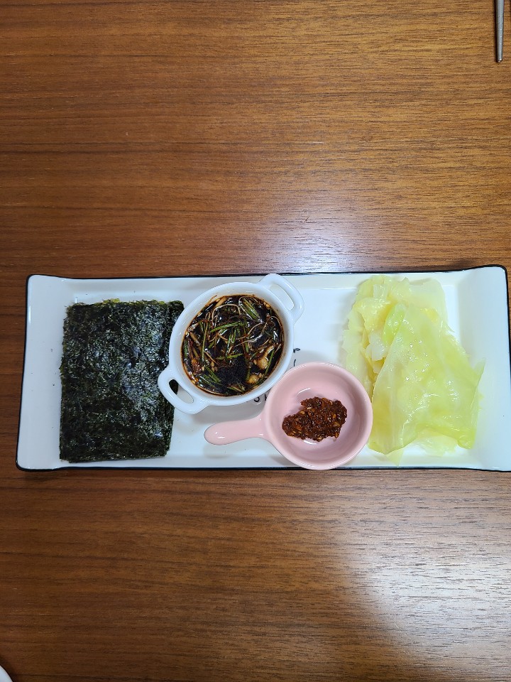 저는 집에 양배추 삶아놓은게 있어서 쌈장과 함께 준비해줬습니다.