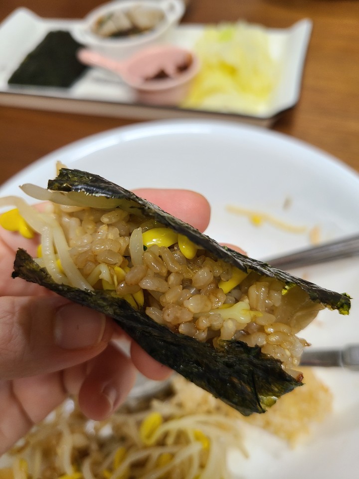 먹고나면 포만감도 좋고, 건강에도 좋은 현미콩나물밥 이었어요.