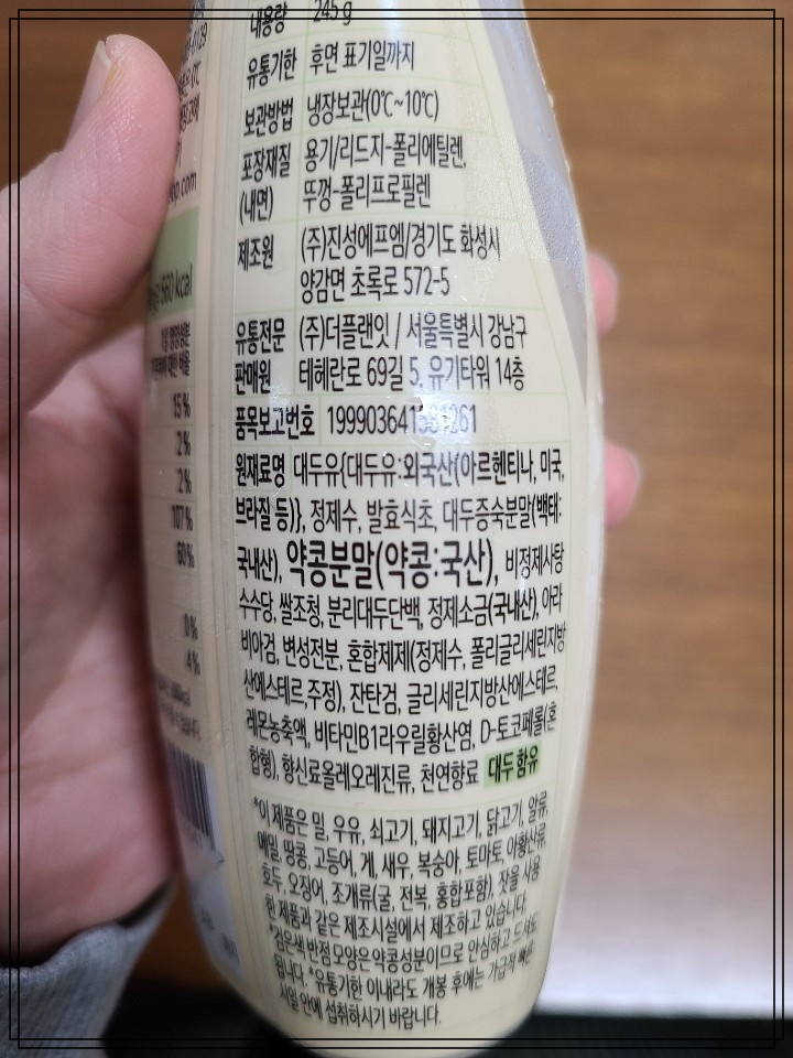느끼하지 않고, 약간 새콤한 맛이 감돌며 고소한 맛이 특징이에요. 샐러드 드레싱을 만들어 먹기에도 좋구요, 샐러리에 콕- 찍어 먹어도 고소하니 맛있어요. 저처럼 감자샐러드를 자주 드시는 분들께 권합니다.