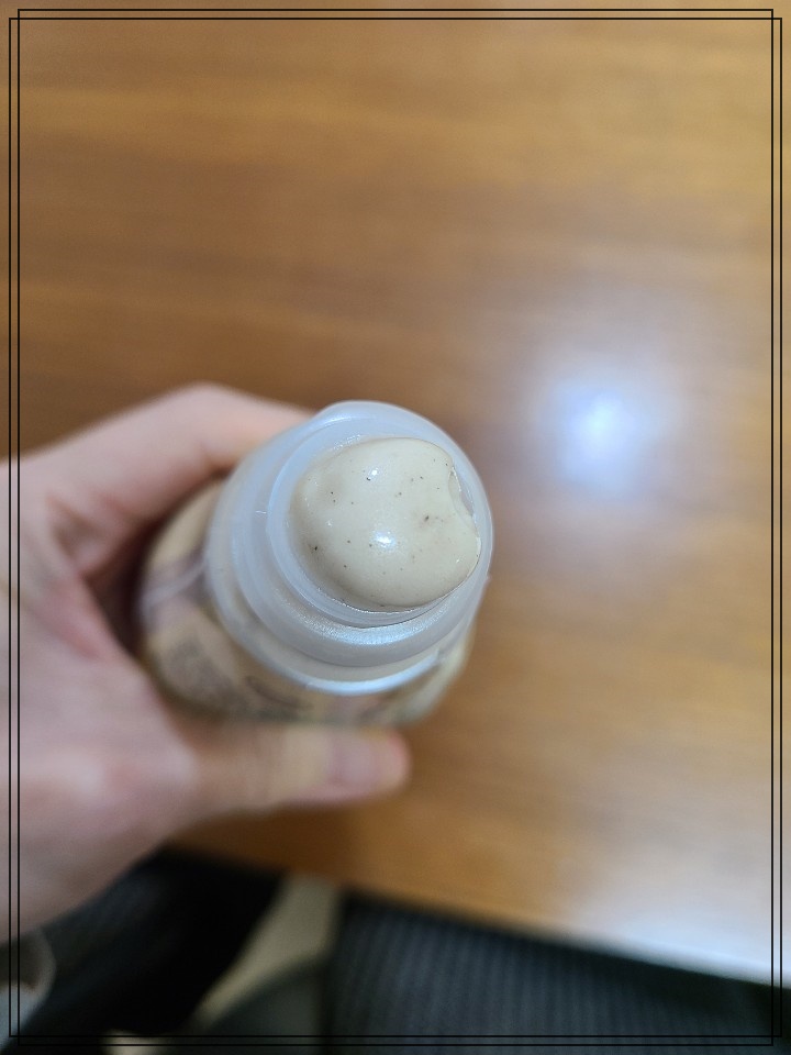 잇츠베러 마요 색상 참고하세요~ 일반 마요네즈 색하고 조금 다르죠? 약간 어두운 색이에요. 검은색 반점 모양은 약콩성분이라고해요. 안심하고 드셔도 됩니다.