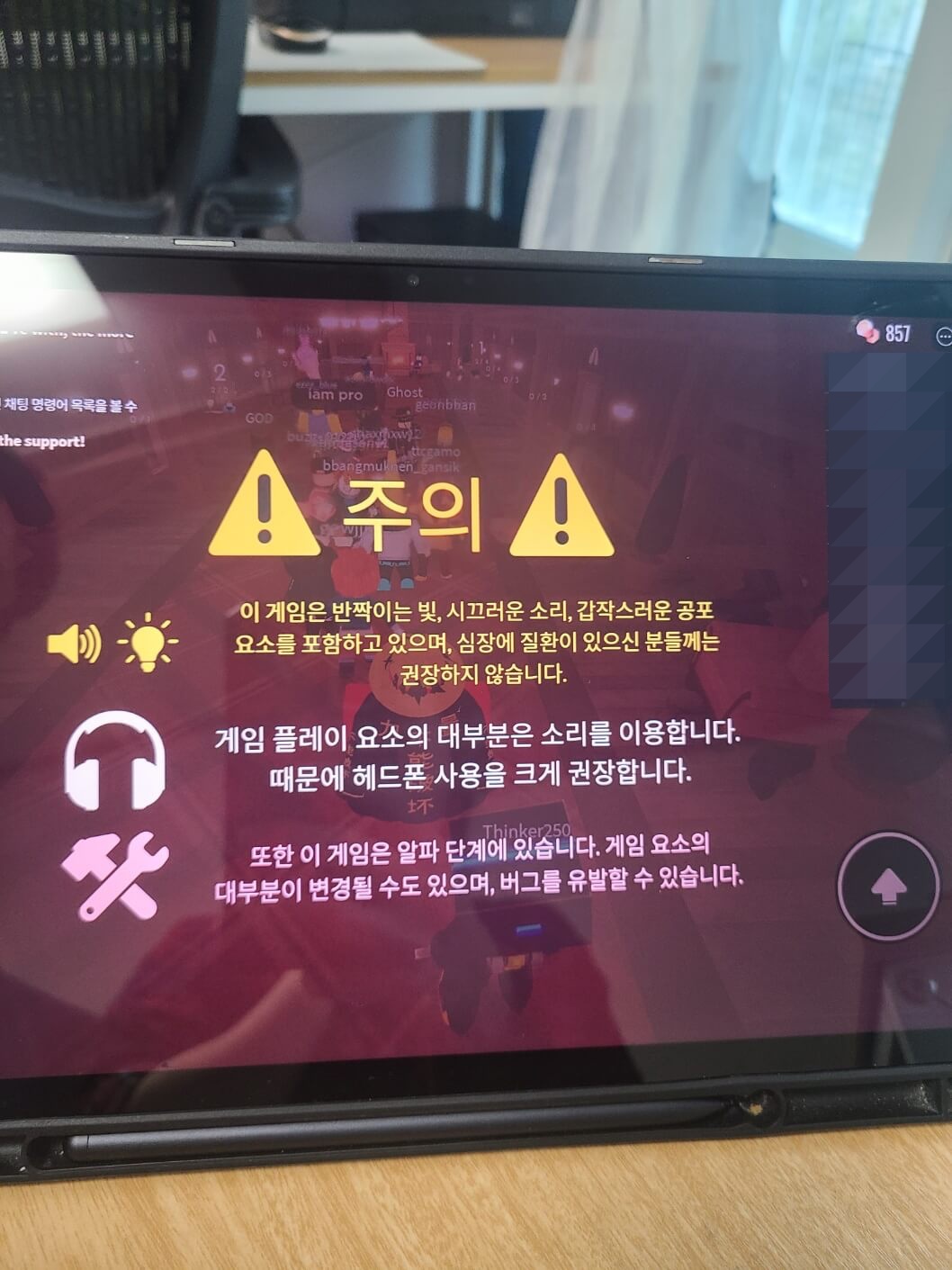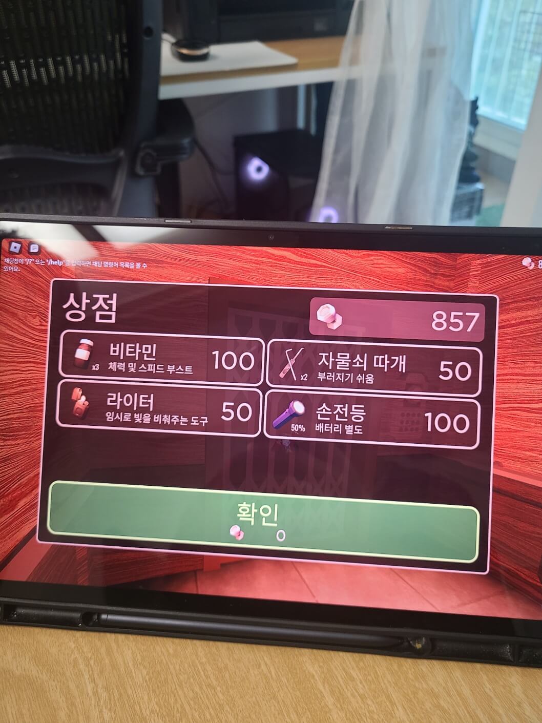 3.문 주변에 보라색 불빛이나 이상한 소리가 들리면 화면을 바닥으로 돌려야 합니다. 아이즈를 보면 체력이 닳습니다.