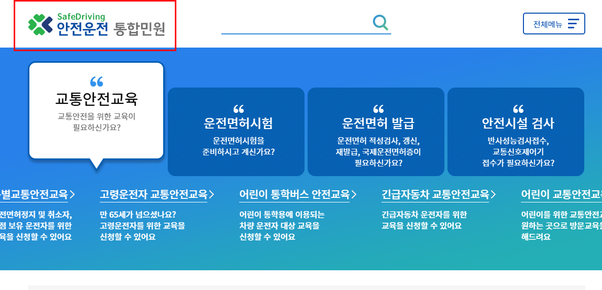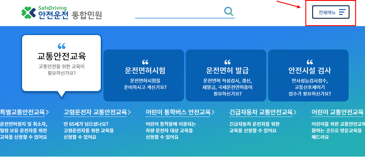우선 아래와같은 화면의 [안전운전 통합민원] 사이트에 접속합니다.