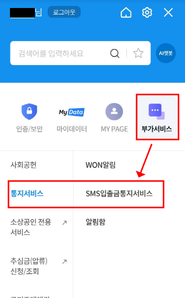 이 원뱅킹에서 문자서비스 신청하는 방법 알아보겠습니다.