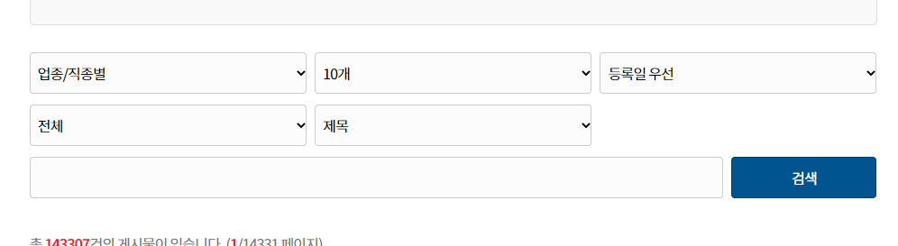원하는 업종/직종별을 선택한 후, 나오는 공고를 선택하여 볼 수 있습니다.