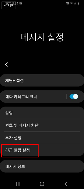 여기에서 긴급 알림 설정을 눌러주면 됩니다.