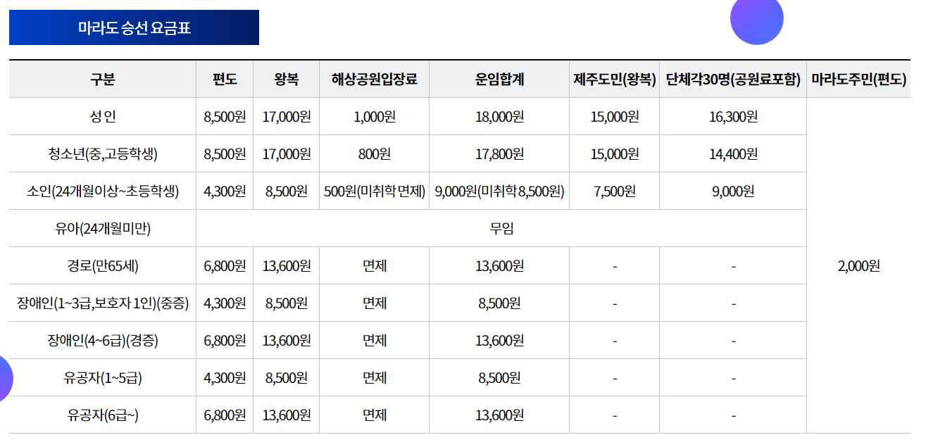 마라도 승선요금