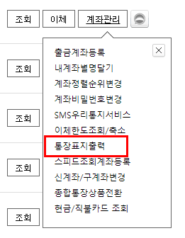 이 작은 창에 생긴 메뉴들 중, 중간에 위치한 통장표지출력을 클릭해줍니다.