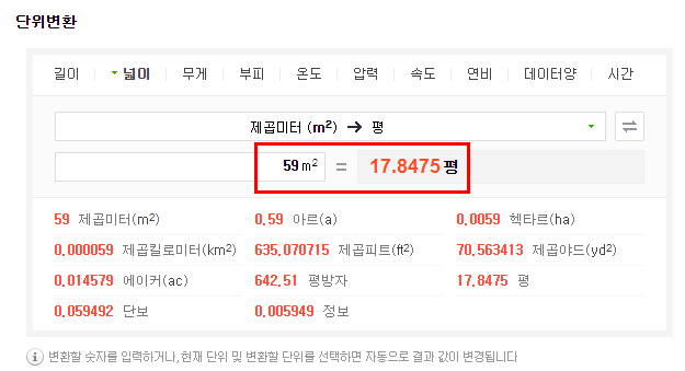 전용면적 59㎡ 는 몇 평일까요?
