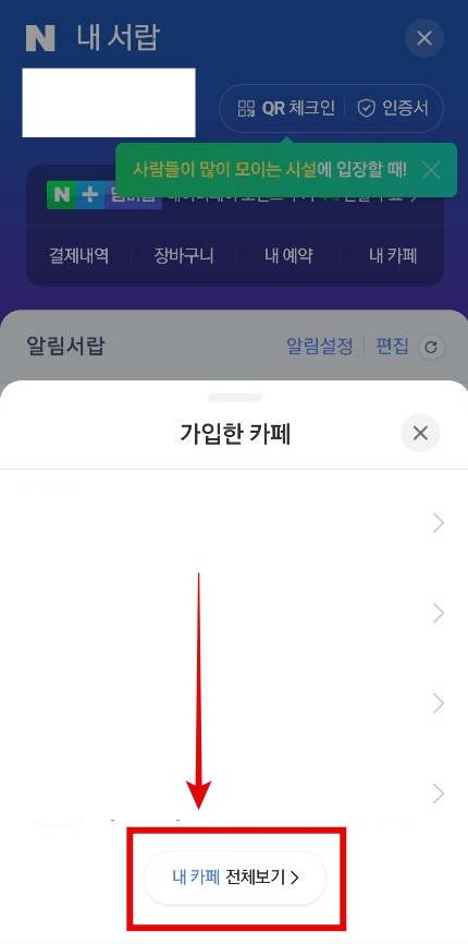 이 내 카페에 들어가줍니다. 그리고 하단에 있는 [내 카페 전체보기]를 클릭해주세요.