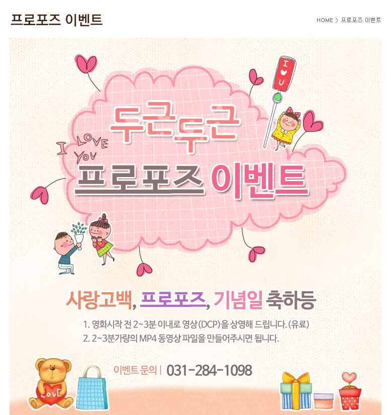 용인 자동차극장에서는 프로포즈이벤트를 할 수 있습니다. 영화 시작 전, 2~3분 정도의 영상을 상영해주는 이벤트입니다. 물론, 유료입니다.