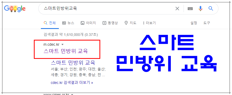검색하면 위와같이 스마트민방위교육을 받을 수 있는 사이트가 상단에 나옵니다. 이 사이트를 클릭해주세요.