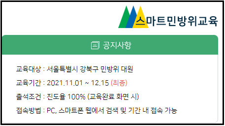 ※ 이 스마트민방위 교육은 기간 내 24시간 가능합니다.