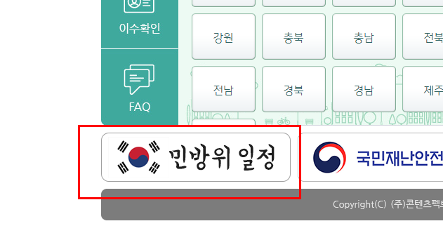 그리고 사이버민방위교육 사이트에서 [민방위 일정]을 클릭하면 민방위 일정을 검색해 볼 수 있습니다.