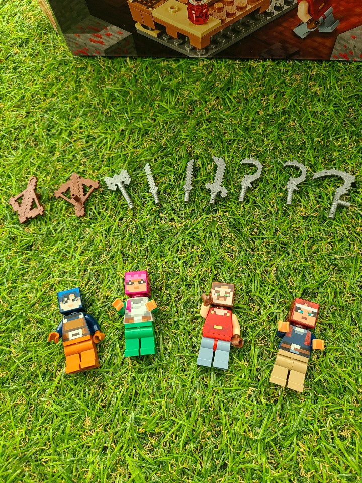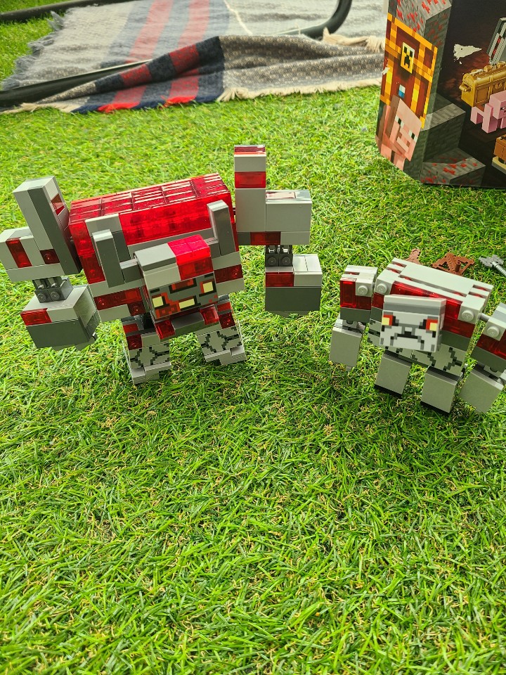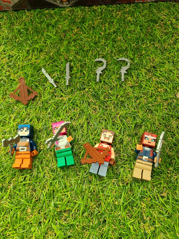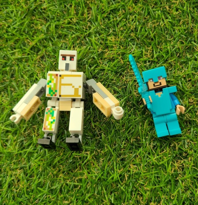 따로 구입한 철골렘 그리고 스티브입니다. 호환 레고로 구입했는데, 저렴하지 않은 가격임에도 불구하고 조립이 매우 힘들었습니다. 스티브 조립은 괜찮았으나, 철골렘은 순간접착제로 조립을 마무리 해야하는 부분이 있었습니다.