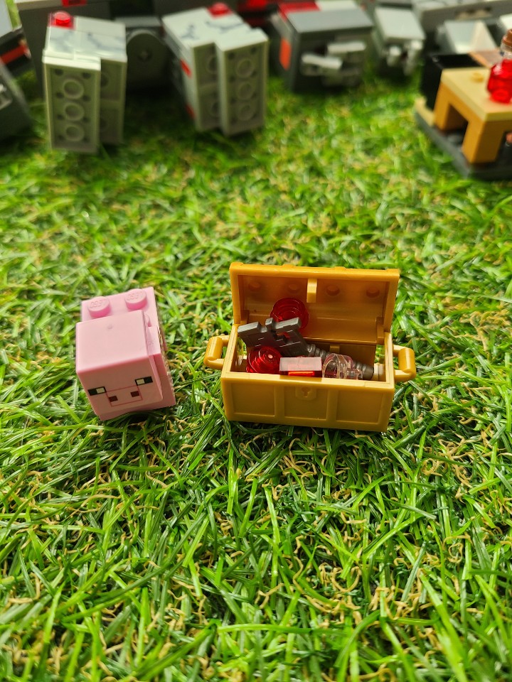 개인 적으로 제일 귀엽다 생각하는 마인크래프트 속 돼지 캐릭터입니다. 그리고 보물상자도 함께 구성되어있습니다.