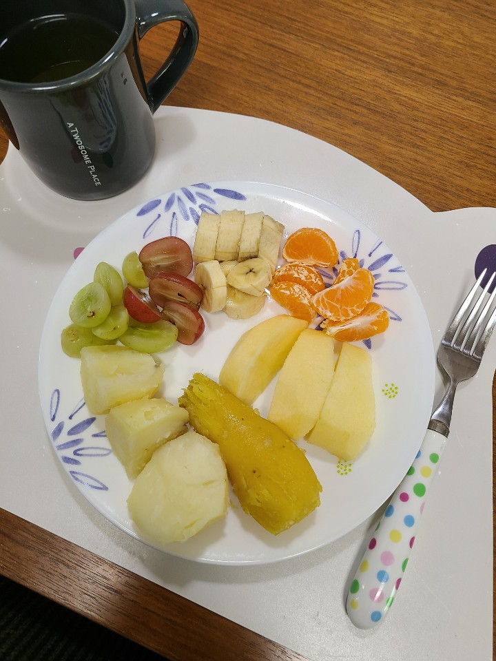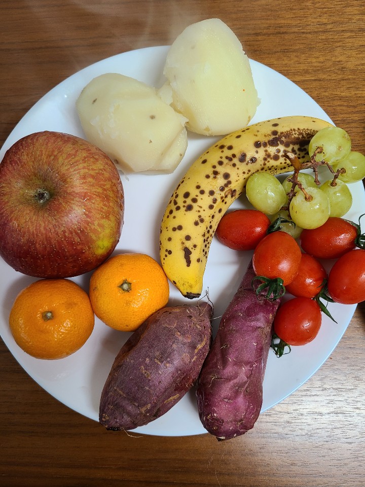 저는 주로, 집에 있는 과일과 고구마, 감자로 아침식사를 합니다.